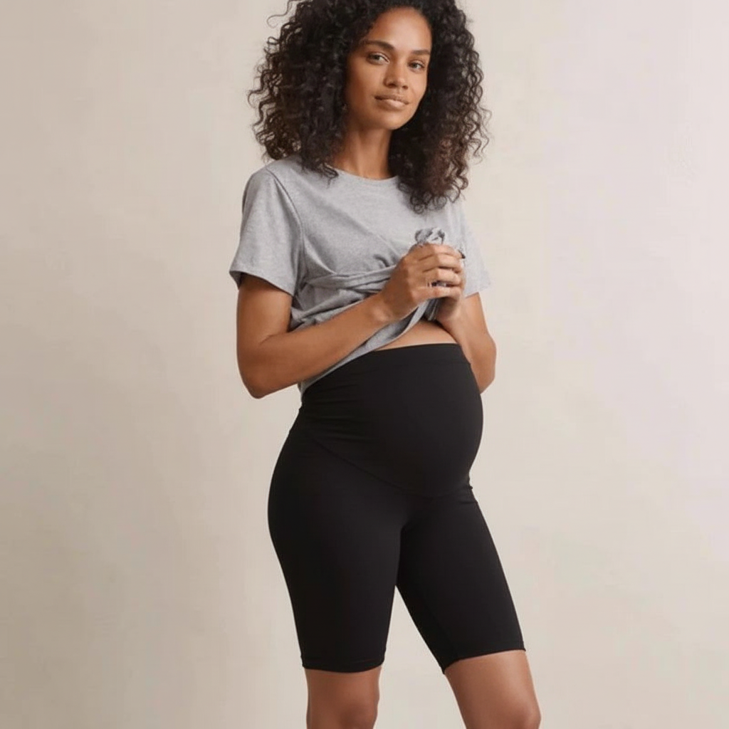 Von den ersten Anzeichen der Schwangerschaft bis hin zu dem unvergesslichen Moment nach der Entbindung bietet dir unsere Short Komfort, Entlasung und Stil.