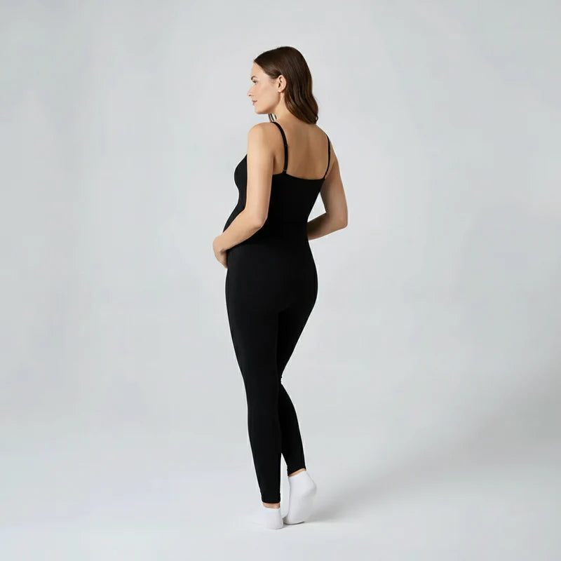 Unser Jumpsuit unterstützt dich, indem er dein Babygewicht trägt und deinen unteren Rücken sanft entlastet.